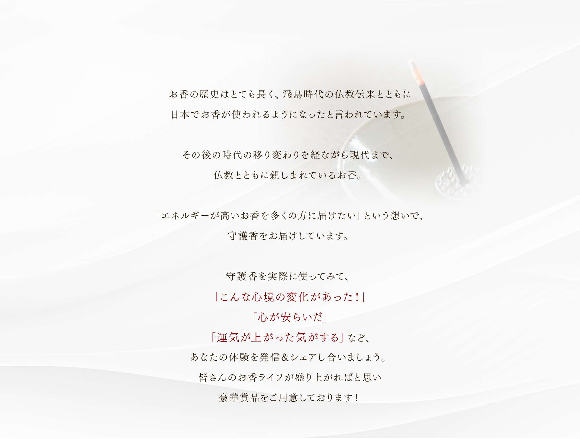 守護香の画像と感想を添えて「#守護香」とつけてSNSに投稿!